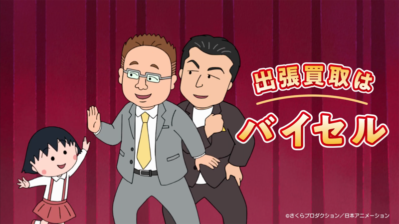人気お笑いコンビのサンドウィッチマンが、買取サービス「バイセル」の新イメージキャラクターに就任! 10月1日(水)より放送・公開中の新CMでは、ちびまる子ちゃんのイラストで描き起こされたサンドウィッチマンが、まるちゃんとバトンタッチやジングルを歌唱しています。