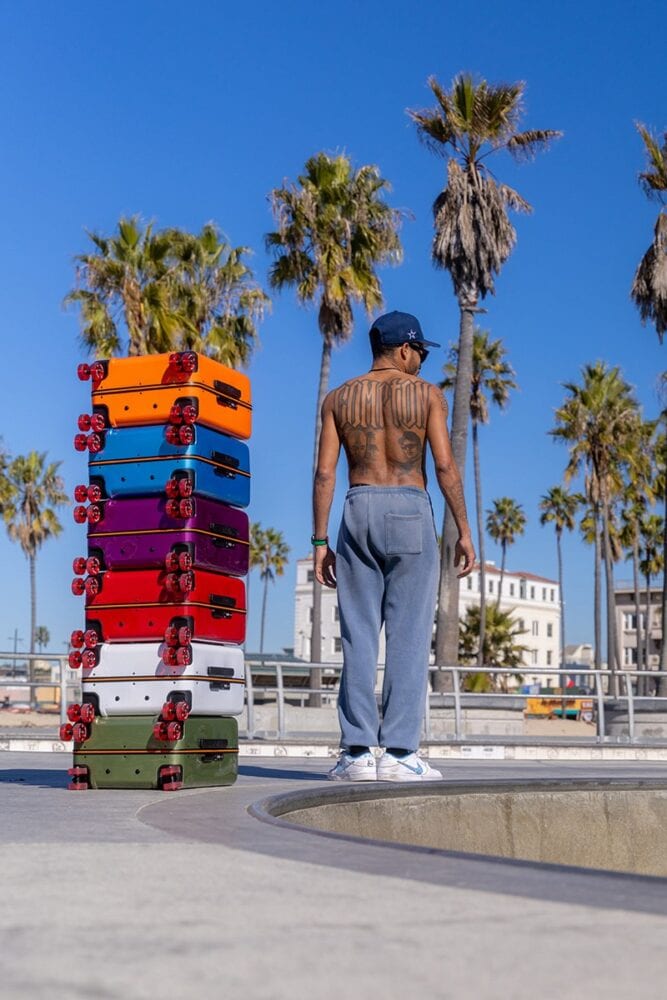 ブランドの象徴でもあるスケートボードウィールから着想を得たキャスターは、優れた走行性とインパクトのあるデザインを兼ね備えている。カラフルなボディカラーと交換可能なウィールにより、自分だけのスーツケースへカスタマイズできる点も魅力である。