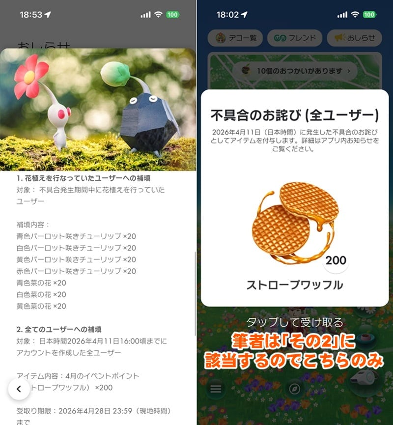 従来の補填は状況に関わらず全員同じものを配布する印象だったけど、こうして違いがでるのは公式アナウンスにもあるとおり「公平性」を感じられてとてもいい。