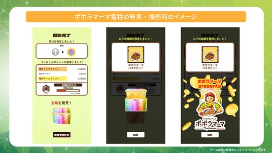 企業の協賛により賞品が得られるお宝電柱として「ポポラマーマ電柱」が登場します。「ポポラマーマ電柱」は、「ポポラマーマ」とコラボした電柱であり、見つけて撮影することでパスタセットが進呈されます。
