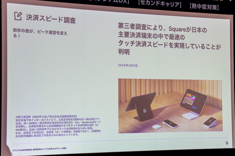 Squareは主要な決済端末の中で最速のタッチ決済スピードと評価されている。現場での、この決済のスピードが数秒変わることでの全体の効率化については「たとえば運営が約3時間ぐらいの中で、1秒決済が早く進めば、会計数が変化し、単純に売上に直結するので、ものすごく大きな差だなと思っています」と、決済スピードの重要性を強調した。