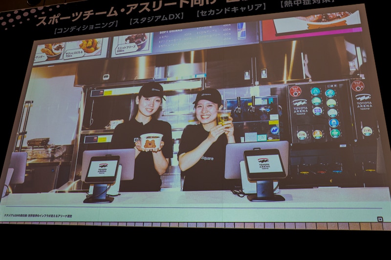 TOYOTA ARENA TOKYOで今後実現していきたい観戦体験や運営として目指しているものについては「実は4月22日の今度の試合で、一部のお席でデリバリーシステムのテスト運用があります。そこがスムーズに実現できれば、コンコースでお客様がお待ちいただく時間と手間がゼロになり、好きなタイミングでご注文をいただける環境を整えられます。諸々課題はありますが、お客様の没入感をより一層上げられて、観戦の満足度の向上に寄与できるのではないかと思っています」と、座席に座ったまま観戦と注文をシームレスに完結できるデリバリーシステムを目指していると明らかにした。
