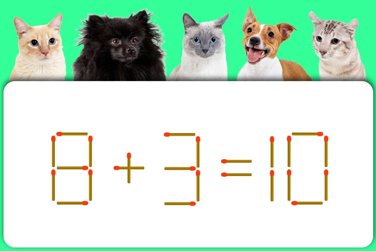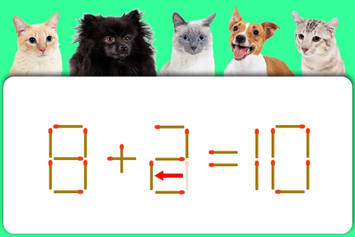 式の「3」から、右下にある縦のマッチ棒を左にスライドさせてみましょう。なんと……「2」に変わりました!これにより式が「8+2=10」となり、綺麗で正しい式になりました!