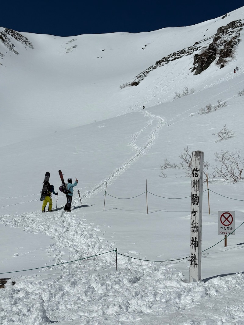 この日は約3時間半の軽めのBCラン。天気も雪も満足そのものだったが、融雪の早さ、すでにこの雪のすくなさを思うと、例年5月下旬までは十分楽しめる千畳敷も、今季はGWくらいまでなのかなと感じる。