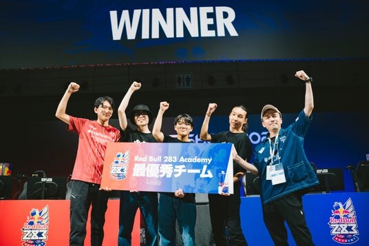 16歳以上24歳以下の若手プレイヤーがウメハラ、ボンちゃん、ガチくんら最前線に立つプロゲーマーから直接指導を受ける育成プログラム「Red Bull 283 Academy」。314名の応募を勝ち抜き、8月に行われた合宿・集中講義を経て「ガチくん・ネモ」チーム、「ボンちゃん・立川」チーム、「ふ~ど・板橋ザンギエフ」チーム、「ときど・どぐら」チームが、TGSイベントステージで、会場の650席を埋め尽くすゲームファンの前で「ストリートファイター6」で対戦。試合ごとに歓声が渦巻く熱気の中、23歳の「s_usa」と18歳の「並盛りゲコ」、21歳の「げんれと」の「ガチくん・ネモ」チームが優勝しました。優勝した3名は「講師陣が、合宿後に個人で出場した大会を見て親身にアドバイスをくれたことや、本番も近くで応援をしてくれたことが力に繋がったと思います。TGSの大舞台に立った経験が最も成長に繋がったので、今後の大会等に活かしたいです」とコメント。優勝チームの講師を務めたガチくんは、「今までは感覚的にやっていた部分を、相手を見て考えて動けるようになったことが一番成長した点だと思います。また初戦でネモさんのアドバイスをs_usa君が実践し勝ち取ったことからチームの一体感が増して勢いに乗り、今日の優勝にも繋がったと思います。ゲーム業界は昔に比べ実力があれば注目される環境なので、ぜひ高みを目指して頑張ってほしいです。」と生徒の成長ぶりを振り返りました。また日本初のプロゲーマーで、本プログラムの校長を務めるウメハラは「皆さん本当に成長が早く、今後どこかで闘う可能性もあるかと思いました。優勝した3名もこれに慢心することなく、今後も精進してほしいです。若手の皆さんも今後このような機会があればぜひ積極的に参加してください」と語りました。