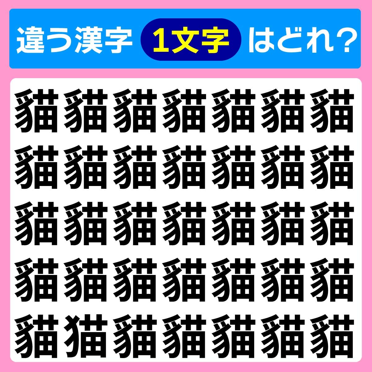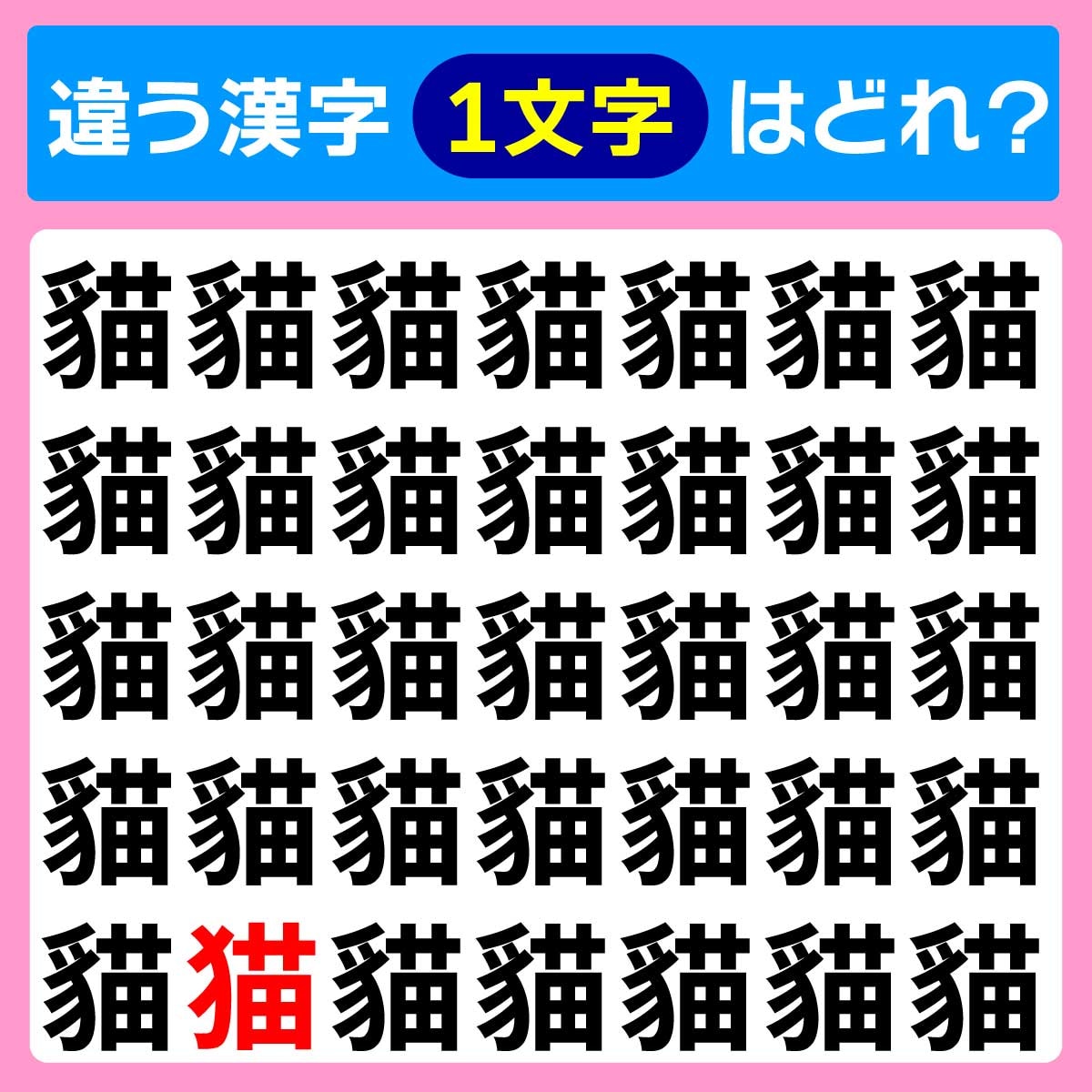 違う漢字は、一番下の列、左から2番目の文字でした!
