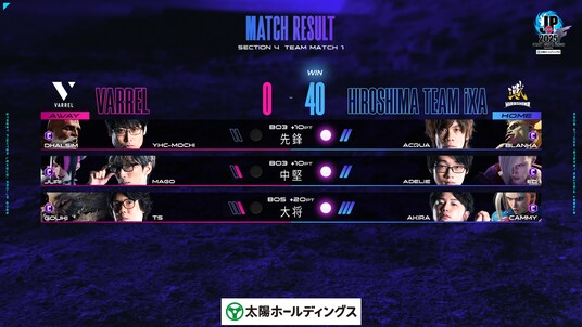 0-40で「広島 TEAM iXA」が勝利。合計120ポイントを獲得し、ランキング首位に躍り出た。