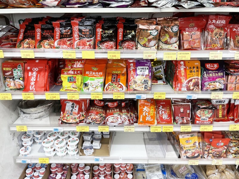 スーパーマーケットにはたくさんの中華食材が売られている。お酒やドリンクをスーパーマーケットで買い、それを飲みつつフードコートの中華料理を食べる人は多い。料理を作ってもらっている最中、スーパーマーケットでビールやジュースなどを調達するとスムーズだ。