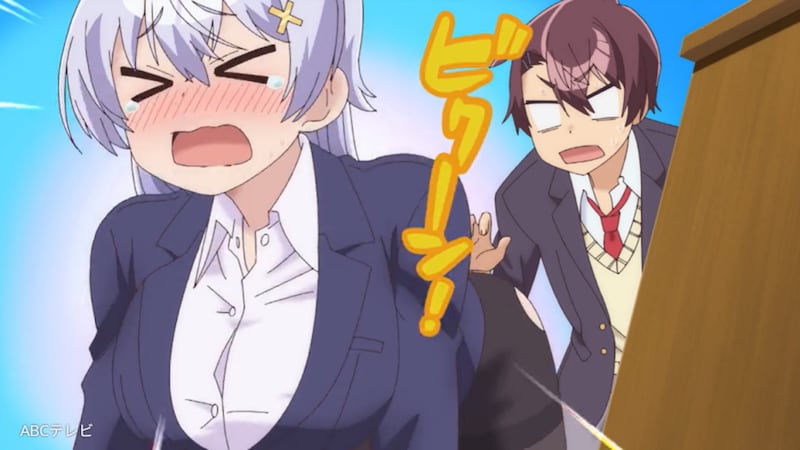 アニメ『よわよわ先生』は、新人教師の鶸村(ひわむら)ひより先生(CV:高野麻里佳)と、不器用な鶸村先生をサポートしようと奮闘する生徒の阿比倉(あびくら)章人くん(CV:波多野翔)が展開する、ちょっと刺激的なラブコメディ。