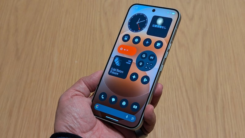 本体サイズはH163.9×W77.5×D8.5mm、重量は約205g。背面にはGorilla Glassを採用し、耐久性を向上しています。IP64の防水・防塵に対応。ディスプレイは6.78インチのフレキシブルAMOLEDで、解像度は2720×1224ピクセル。最大輝度は4500nits。バッテリー容量は5080mAhで、30分以内に1日分の充電ができる50W急速充電に対応します。プロセッサーはQualcomm Snapdragon 7S Gen 4、OSはNothing OS 4.1。eSIMとFeliCaに対応します。