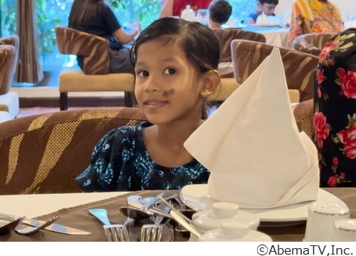 街で声をかけてくれた、父・サダムさん、母・アイシャさん、娘・フィリアちゃんの親子3人と、高級住宅街にあるレストランを訪れたくるま。料理を待つ間、くるまが「どうして僕たちと一緒にご飯を食べてくれるんですか?」とたずねると、サダムさんは「日本から来た大事なゲストだから」「この国は歓迎の気持ちをとても大事にしている」と語る。