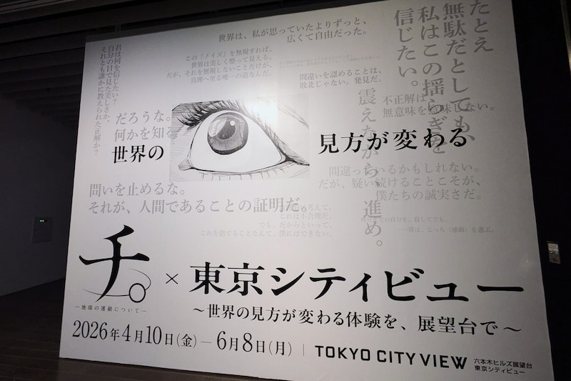 2026年4月10日から6月8日まで、東京・六本木ヒルズ展望台 東京シティビューで開催中の、魚豊氏による漫画『チ。 ―地球の運動について―』の体験型展示。