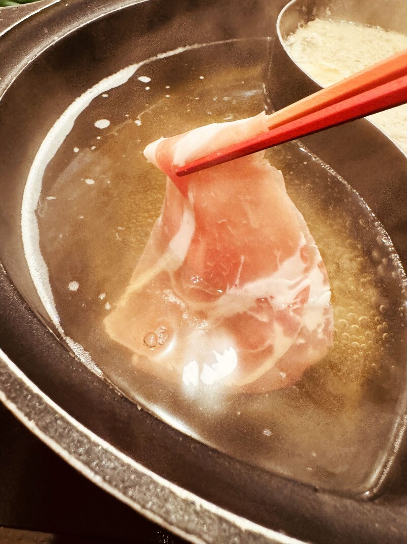 さっそく沸騰した出汁に浸して、しゃぶしゃぶします。