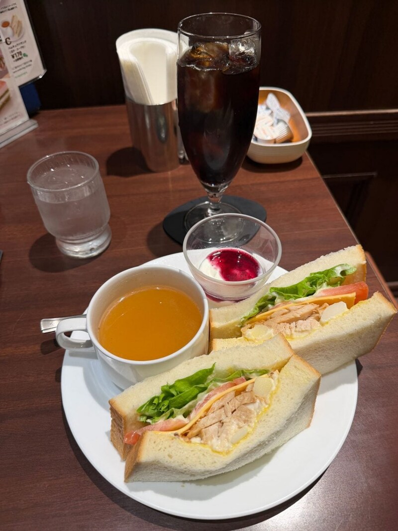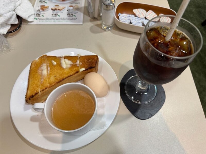……といった具合。モーニングではないサイドメニューでは、ゆで卵100¥、コンソメスープ80円、濃厚ブルーベリーヨーグルト100円になることを考えるとリーズナブルすぎるのである。