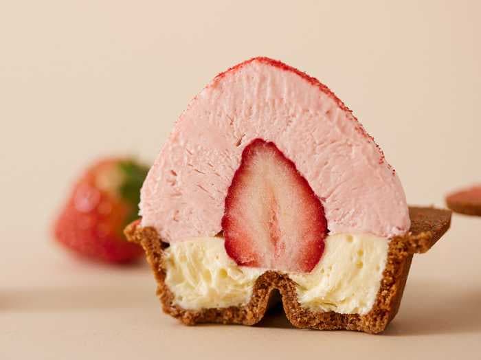 ひんやりとしたいちごとクリーミーなムースのコントラストを楽しむなら、半解凍がおすすめ。まるでフルーツアイスのような食感が味わえ、ザクザククッキーとの組み合わせも楽しめます。