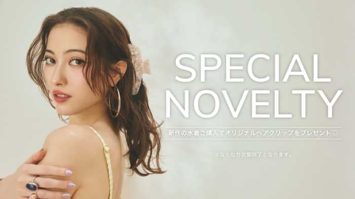 今回のコレクション発売を記念して、ノベルティキャンペーンも開催。新作スイムウェアを購入すると、RAVIJOURオリジナルのヘアクリップがプレゼントされます。