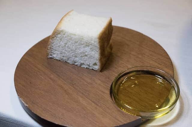 青森にある「奥入瀬渓流ホテル by 星野リゾート」のコースディナーでも美味しいパンに出会ったのですが、こちらのフォカッチャもよく味わっておきたい一品。最初のひと口はほぼ味がしないのですが、そのあと口に運ぶたびに甘味が増し、やがてほのかな甘味が恋しくなって手が止まらなくなる出来栄え。この後の魚料理には全粒粉のパンも提供されます。