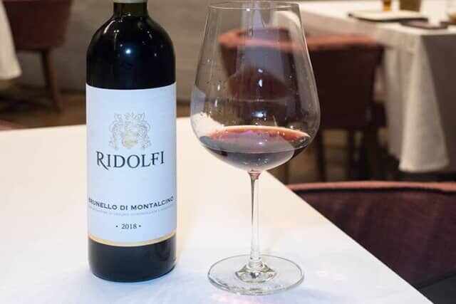 肉料理に合わせたのは “トスカーナワインの王様” と称される「ブルネッロ ディ モンタルチーノ リドルフィ」の2018年。サンジョヴェーゼ グロッソを使ったワインで、牛肉の炭火焼を引き立てるジューシーさとコク、酸味がありながら重すぎることのない流麗な味わいのビンテージです。