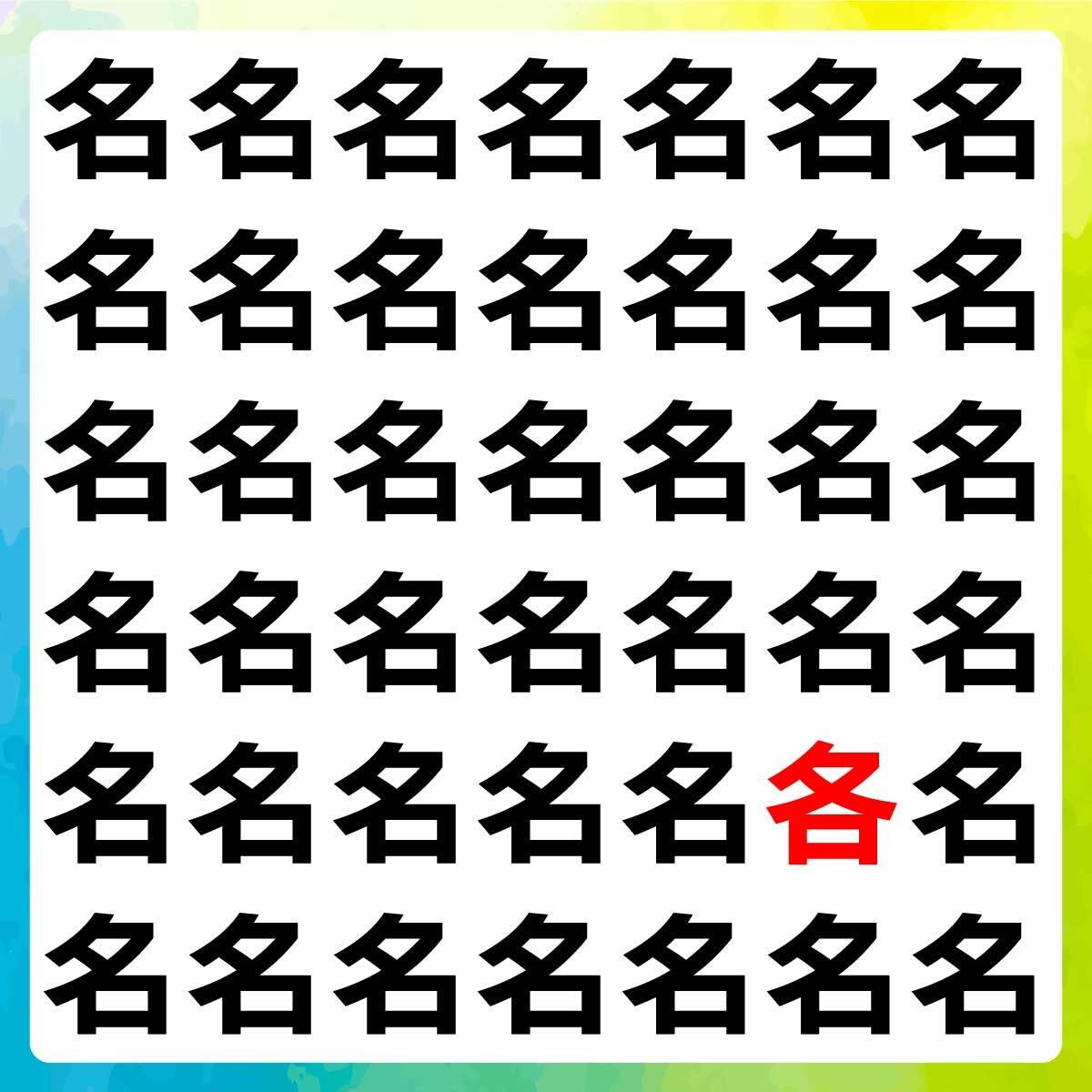 違う漢字は下から2列目、右から2番目の文字でした!