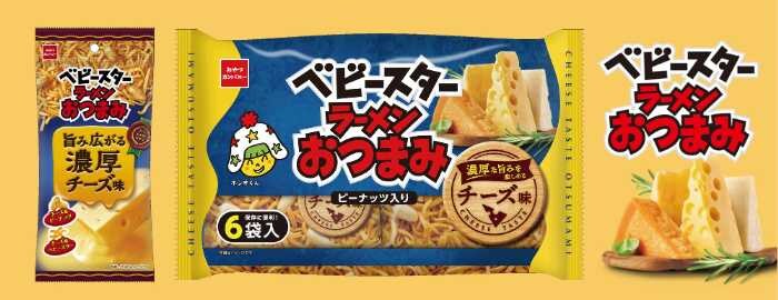 「ベビースターラーメンおつまみ(旨み広がる濃厚チーズ味)」は、まろやかでコクのあるチーズの風味がクセになる逸品。