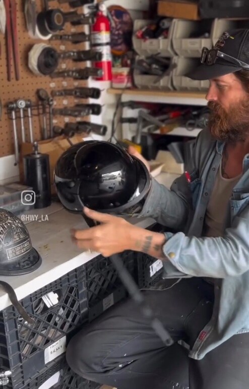 帽体のモチーフとなったのはチェイスが長年愛用しているヘルメットである、ツバが付いた「ジョッキースタイル」。これを工場で大量生産するのではなく、TT&COで一つひとつハンドメイドする“FiberGlass Customshop”というヘルメットのシリーズからリリースすることとなった。