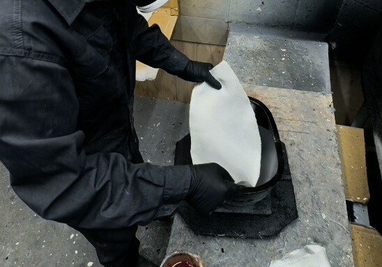 こだわり抜いて作られた原型にゲルコートを塗り、さらにグラスファイバーを敷いて樹脂で伏せ込む。このグラスファイバー→樹脂の工程を繰り返すことで、強固なシェルができあがるというわけだ。シェル製作の工程は下の写真から飛べる動画で観ることができる。