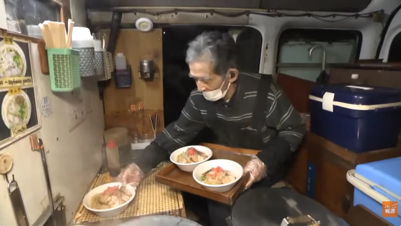 そして、店の軒先に停まる軽自動車が、政行さんが切り盛りする「宮政ラーメン」の屋台。水道や換気扇など車内にある屋台の設備のほとんどは、なんと政行さんが自分で手作りしました。