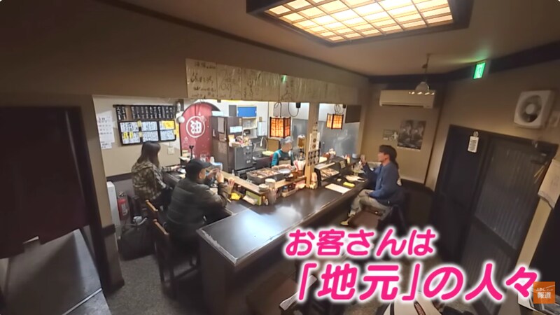 城崎温泉の温泉街から少し外れた場所にある居酒屋「海猫」。店を営むのは宮嶋政行さん(79)と、ムードメーカーの妻・麗子さん(74)のご夫婦。お客さんのほとんどが旅館の従業員など地元の人々で、観光地でありながら良心的な値段のメニューが並びます。