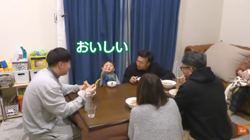 午後8時、ラーメンの注文が入りました。政行さんが向かったのは、5年来のファンという家族のおうち。「ラーメン!」と大はしゃぎで迎えた3歳の男の子は、出来立てのラーメンに「おいしい!」と思わずグーサインです。