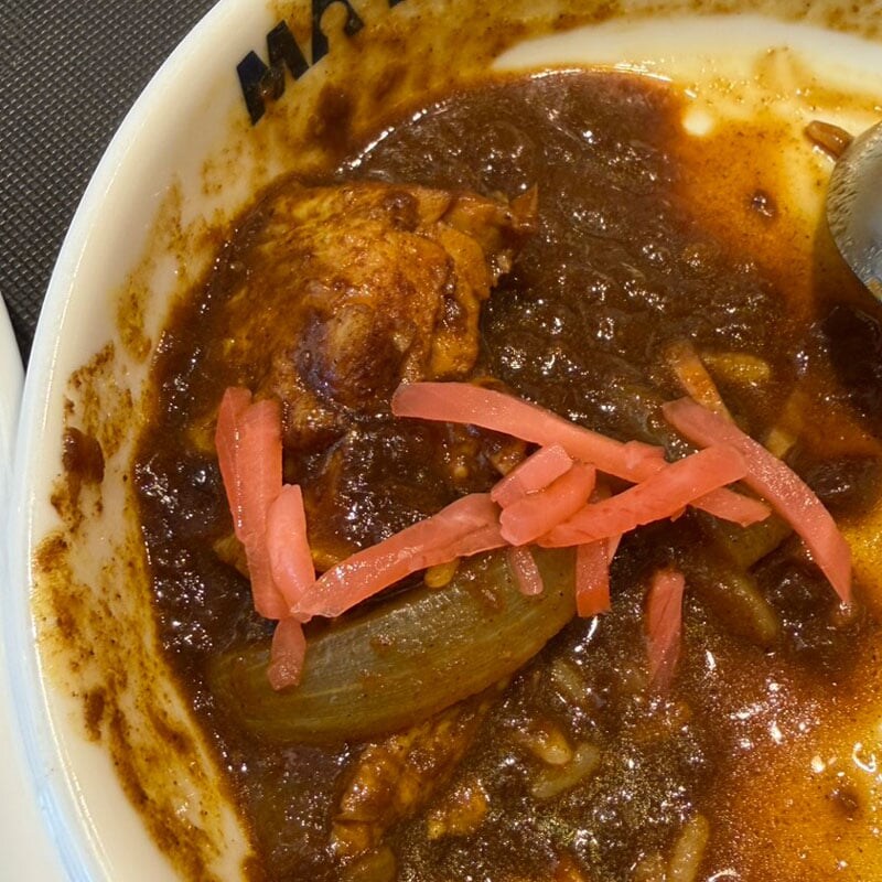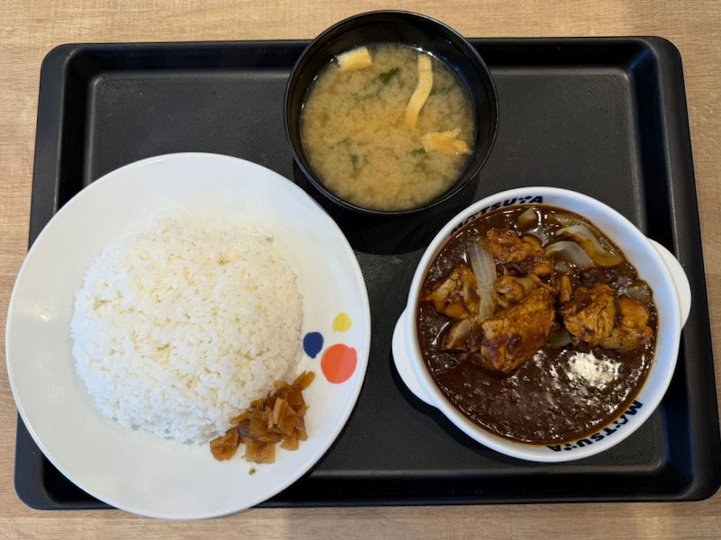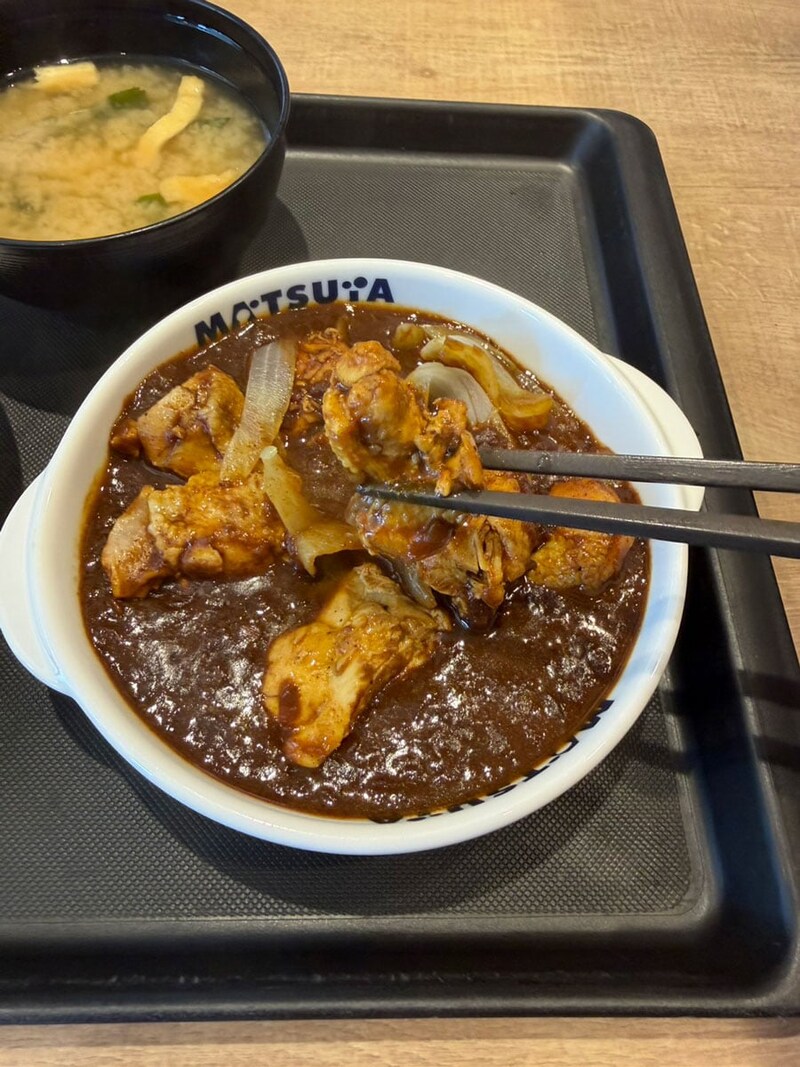 ごろごろ煮込みチキンカレー、ライスと「こだわりの味噌汁」がついて890円。ライスは大盛、特盛無料。とりあえず大盛に。2024年の復活時のお値段は780円だった。