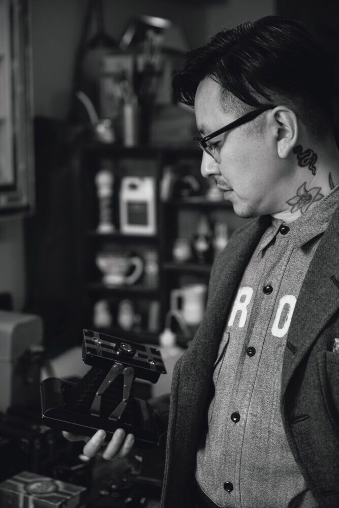 L.|1980年、東京生まれ。旧き良き時代の文化を背景に、独自の世界観を現代へと描き出すデザイナー・アーティスト。グラフィックデザインをはじめ、服やバッグへのペイント、車体やショップへのハンドレタリング、さらにキャンバスに至るまで、表現方法は多彩。GLADHAND&CO.の創業当初から専属アーティストとしてアートワークを手掛け、WOLFMAN BARBER SHOP、Bellwood Experiment Inc,, OLD MOUNTAINなど、様々なブランドのビジュアルを生み出してきた。自身の創作活動の傍ら、アメリカ各地を回り、ジャンル問わずインスピレーションの源となる時代の品々を収集。その中でもアールデコの洗練さを感じさせるデザインや、当時の大衆文化の息づかいを宿したアイテムには、とても惹かれるものがあるそう。世界恐慌で貴金属やエナメルが使いづらくなった中、洗練された生活を求め、生み出されたリバースペイントのガラスフレームや、アールデコからインダストリアルモダンへの移行期が生み出した魅力的なカメラのコレクションなど、その偏愛と、手に入れるまでのヒストリーに想いの篭ったコレクションには、市場価値以上の魅力がある。https://www.l-head.com/