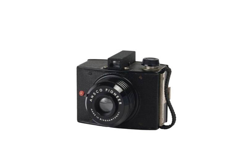 1947年から50年代にかけて販売されていたボックスカメラのPioneer。アールデコ調のディテールが随所に施されている。モデル名は最初の1代に最適だという意味である。