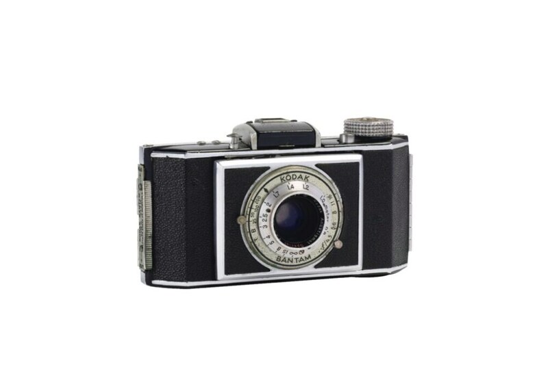 1935年にリリースした828フィルム規格のフォールディングカメラのバンタム。アールデコ調のデザインが随所に落とし込まれており、人気も高い。初期はベークライト。