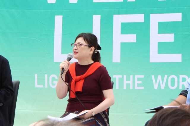 ショーのあとは、本イベントを企画した大阪医科薬科大学の河野恵美子先生と、ユニクロ ダイバーシティ推進チームの塩田知弘さんによるトークセッションが行われました。