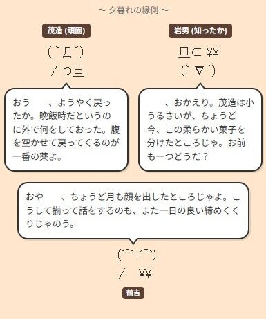 『ちびまる子ちゃん』の友蔵おじいちゃんを彷彿とさせるような、頑固だけど憎めない「茂造(しげぞう)」や、知ったかぶりばかりする「岩男(いわお)」たちが、アスキーアート風の温かいビジュアルでお迎えします。