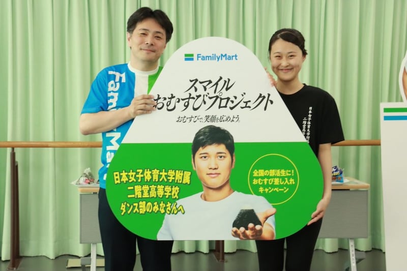 株式会社ファミリーマートは、全国の部活動に励む生徒たちを応援する社会貢献活動「スマイルおむすびプロジェクト」のキャンペーン第2弾として、都内の日本女子体育大学附属二階堂高等学校ダンス部へ、贈呈式としておむすびの差し入れが行われました。