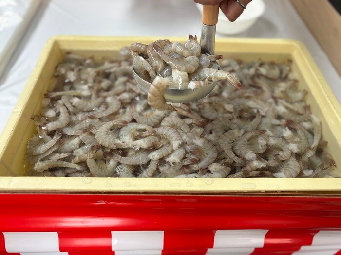 お祭り会場ということもあり、ゲーム性のある面白い企画も多数!インド産バナメイエビを使用した、エビすくい