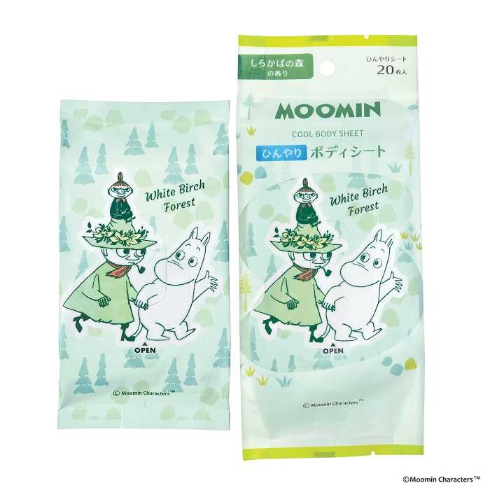 「MOOMINひんやりボディーシート」は、全2種展開で価格は616円(税込)、20枚入り。サイズは約W150×H200mmと使いやすく、やわらかで厚手のシートが汗やベタつきをしっかりオフしてくれます。