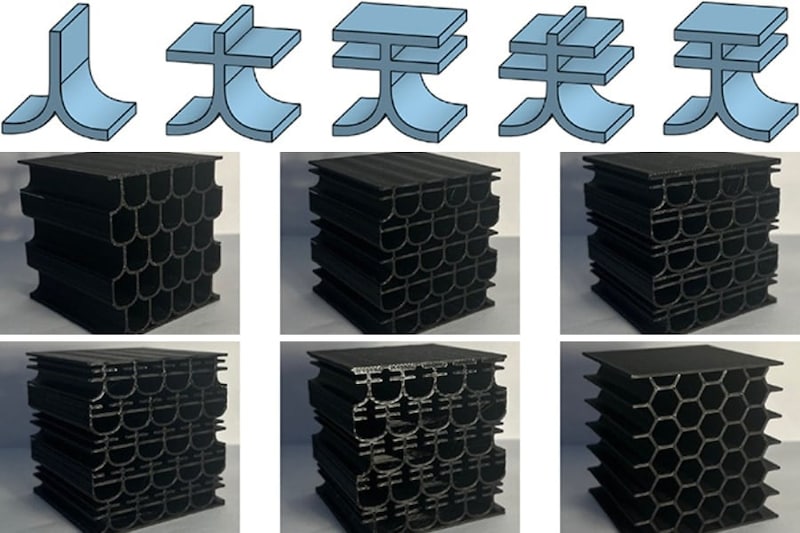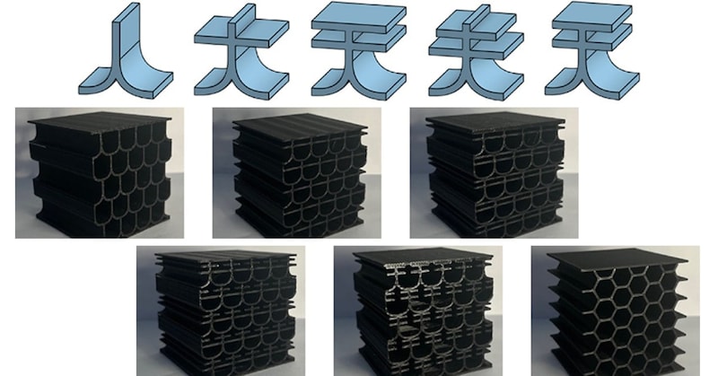 特に「天」をもとにした構造は、他の漢字ベースの構造や比較用のハニカム構造よりも高い剛性と強度を示しました。