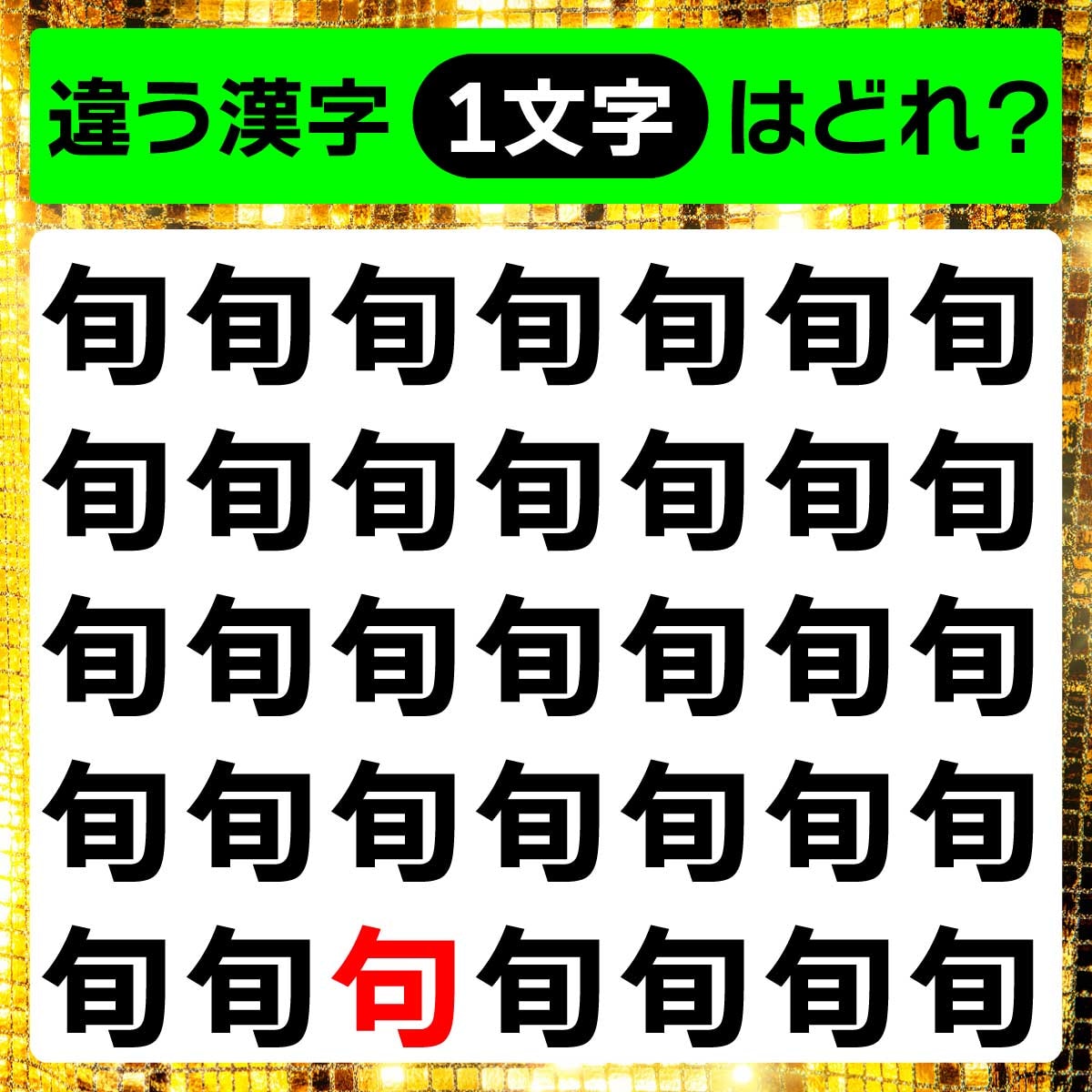 違う漢字は、一番下の列、左から3番目の文字でした!