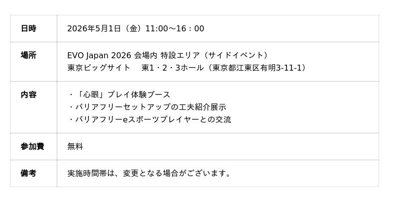 株式会社ePARAは、eスポーツを通じて障害当事者の可能性を広げる活動を続けてまいりました。今回の「EVO Japan 2026」でも、デバイスの工夫やサウンドアクセシビリティの活用を行いながら、ひとつでも多く勝利を収めるべく、挑戦を行います。