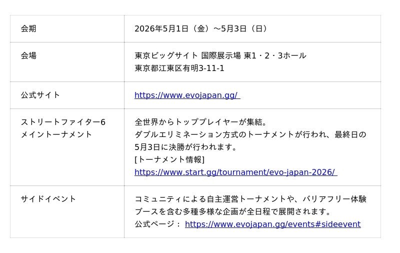 ■ EVO Japan 2026 開催概要
