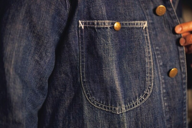 生地を解析することはもちろんのこと、首振りボタンなどのパーツ類もすべてオリジナルで再現。さらに所有している個体は、ポケットすべてが底を余らせながら、真っ直ぐ縫っていたので、当時の縫製職人の癖もしっかりと反映しています。ようやくエイジングしてきましたが、狙い通りの表情で満足しています」