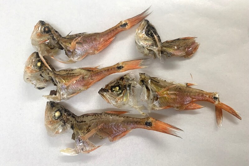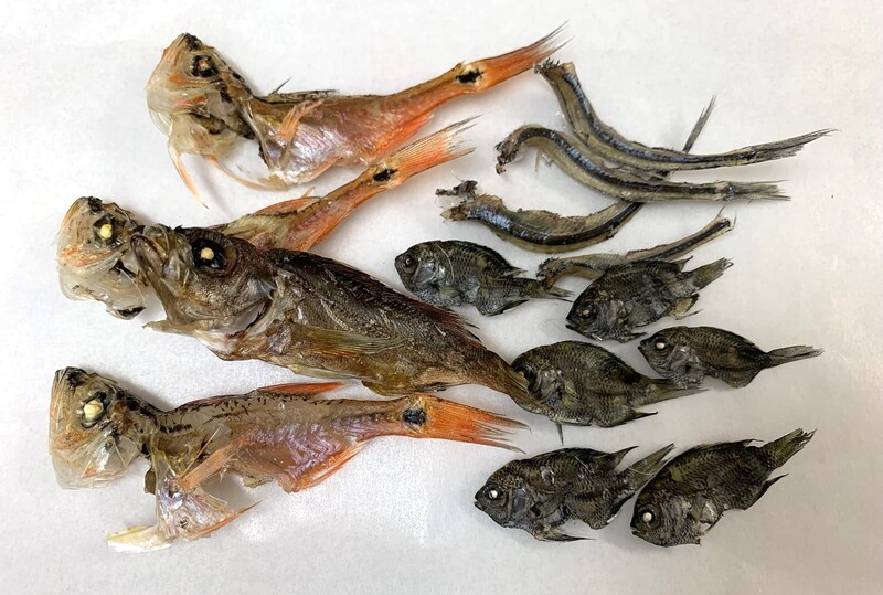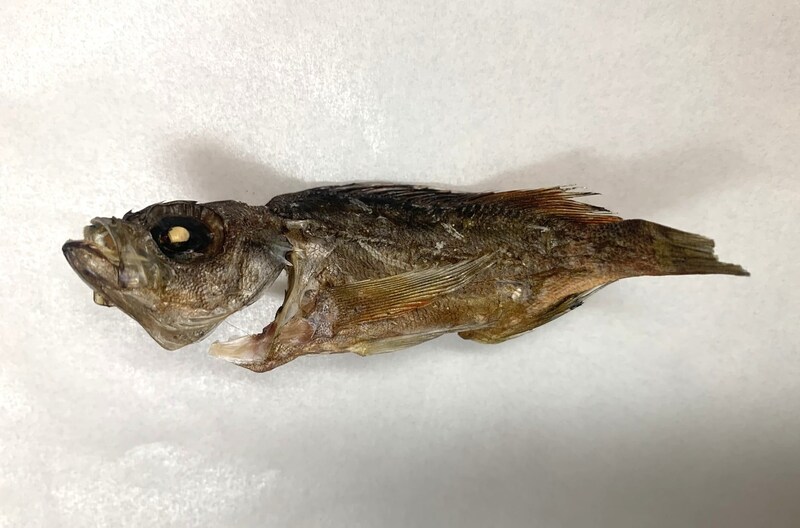 乾かしすぎたためか、愛らしい丸みを帯びたフォルムが魅力のメバルが化け物のようにいかつい姿になってしまった。。。