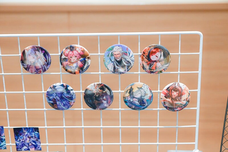 コラボカフェの楽しみは食事だけにとどまらない。会場では、ゲーム内カードイラストを使用したオリジナルグッズも多数展開されている。