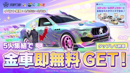 そして、イベント参加でカスタマイズできる金車「SUV:コメントオフェンス」を無料で手に入れることができます。VTuberをモチーフにしたステッカーを集めて、自分だけの痛車を作りましょう!
