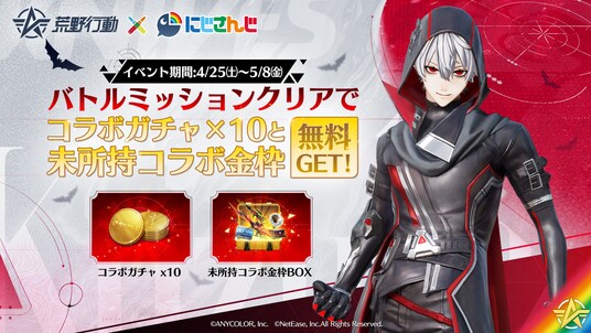 イベントに参加することで、最大40連ガチャ、未獲得コラボ金枠アイテムなどの豪華報酬が獲得可能です。人気VTuberたちとともに楽しめる、特別なコラボイベントをぜひお楽しみください。