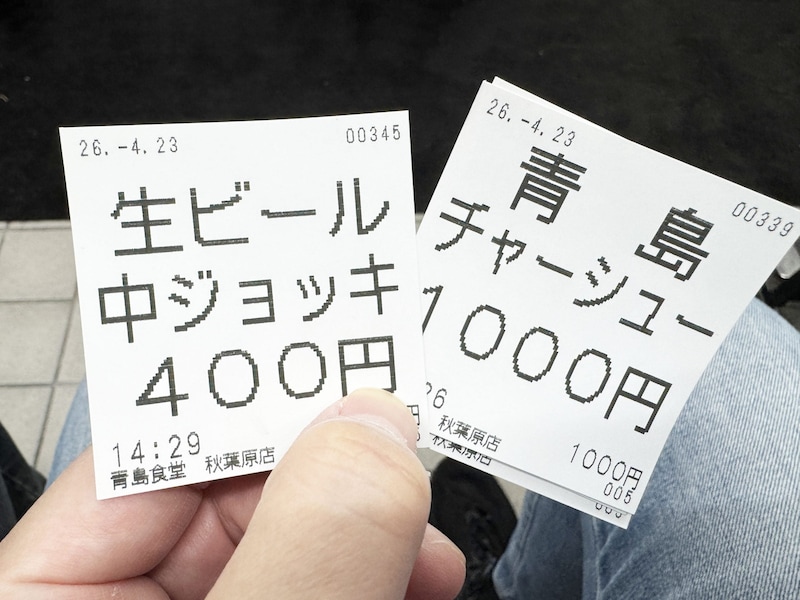 今回は、ビールと青島チャーシューメンを注文。