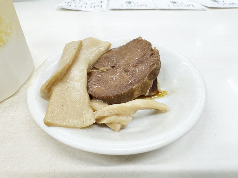 つまり、おつまみとして、無料でメンマとチャーシューをもらえるのである。
