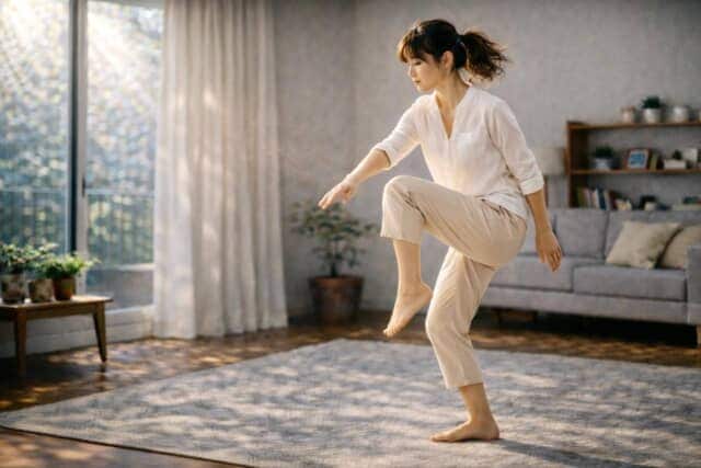 特別なトレーニングをしなくても、日常の動きに近い簡単エクササイズで全身の連動は引き出せます。ポイントは、力むのではなく“流れるように動く”ことです。